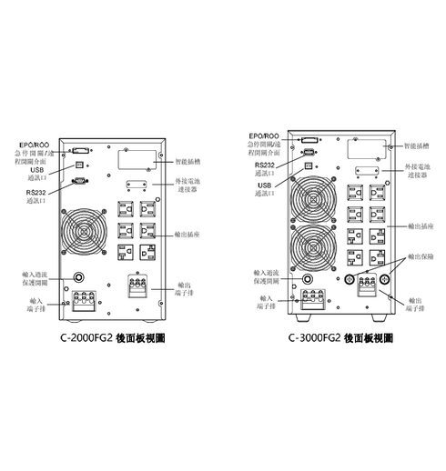AC-AC 效率 | 典型值 86% | 最高可達 90% (C-3000FG2) | 整機運行效率更高,有助於降低電力損耗和營運成本。 |